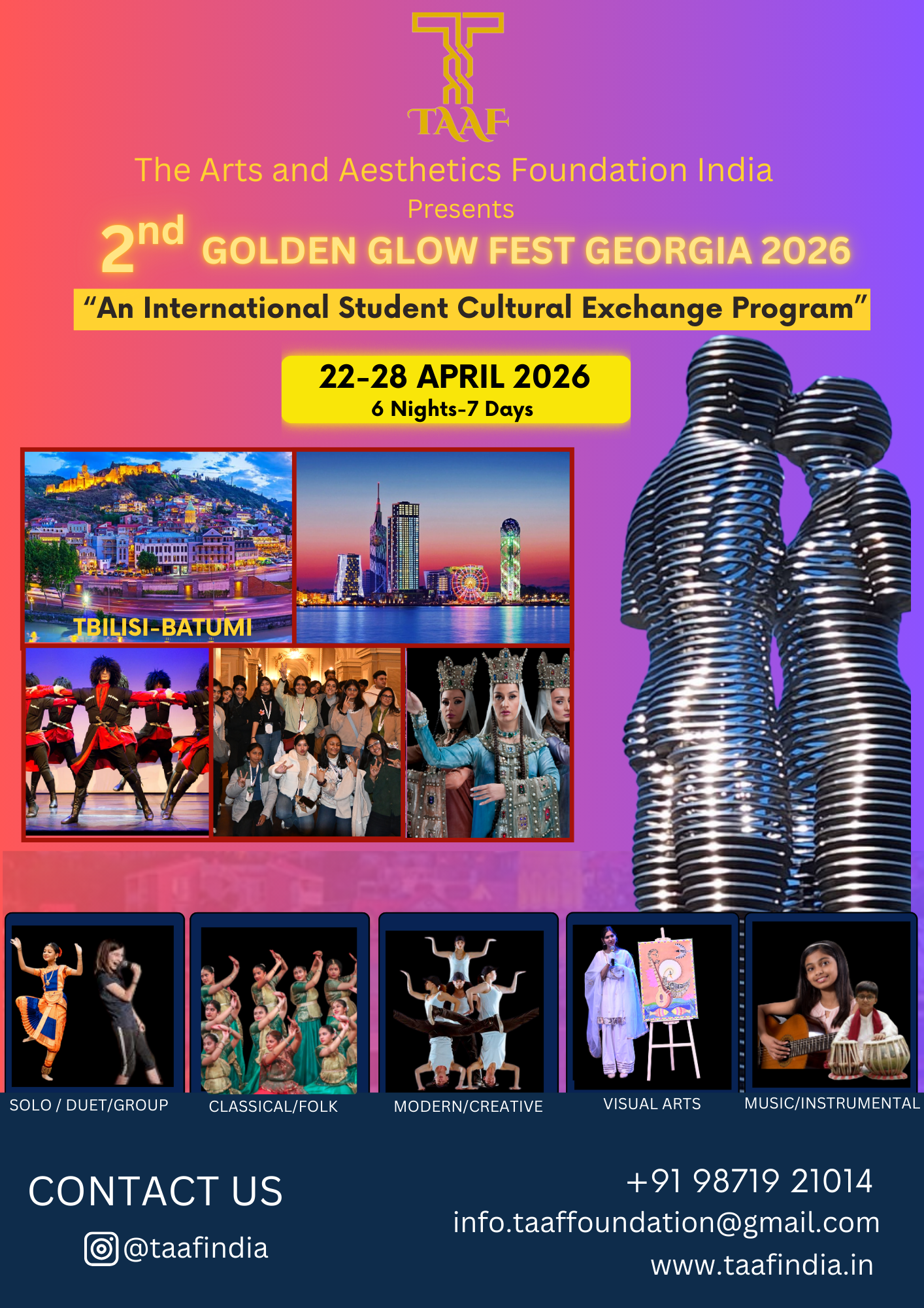 TAAF is a global platform dedicated to empowering youth by fostering excellence in arts, culture & youth-affairs while providing unparalleled international professional exposure.